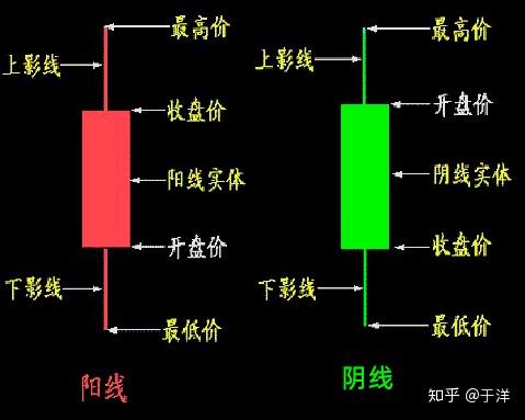 最高价和最低价形成了上、下影线。上下影线不一定必须有,比如阳线中,如果阳线的收盘价与最高价一样,就显出不出上影线了,俗称「光头阳线」,说明行情比较强势,以最高价结束了,说明很多人都看好后续的行情才积极买入的;相反,如果阴线的开盘价与最高价一样,也显示不出上影线,俗称「光头阴线」,表示行情非常弱势,大家都不愿意买,开盘后股价一路下滑,连个泡都没冒过;同理,也有「光脚阳线」与「光脚阴线」,前者表示行情非常强势,后者表示行情非常弱势。