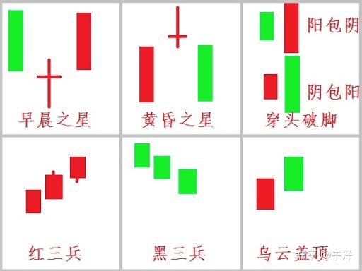 人们找到了大量的 K 线组合,还起了很形象的名称,这样做的目的就是去「预测股价」,比如上图中的早晨之星,阴线表示下跌趋势,然后遇到了十字线,股价止跌,然后紧跟着一个大阳线,表示股价止跌上涨,而黄昏之星正好是相反,表示股价上涨中遇到压力转为了下跌趋势。大家应该看出来了,用 K 线组合预测股价走势,实质上是把多根 K 线的含义组合在一起进行理解,从而得出一个结论, 相当于用「已知」去推断「未知」,在股市这个风云变幻的地方,显然是有很大的失败概率的,这些组合和名称大家点到为止即可,非常不建议去深究,因为这样成功的概率实在是太低太低,大家了解下就行,或者直接忽略这种方式也可以。