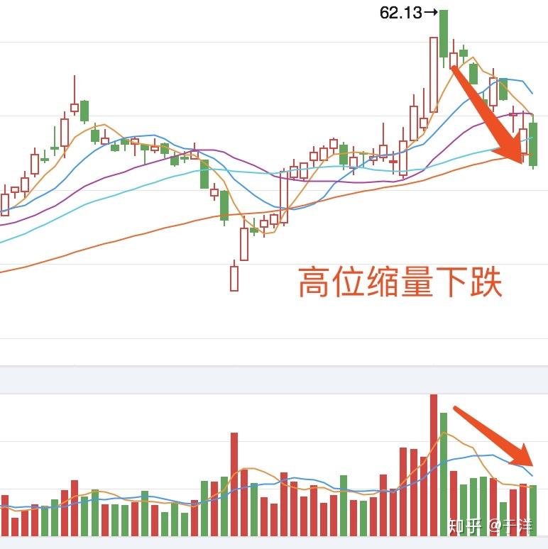 高位缩量下跌。当股价在高位放量,但没有继续上涨的时候,很可能就是有大资金获利了结而离场了,这个时候很有可能股价要下跌,因为失去了最大的买家,再加上处于高位,潜在卖家会很多,但是为什么下跌的时候会缩量呢,这是因为大家都不想买,导致供大于求,买的人很少,使得卖家只能降价处理,从而导致成交量减少,股价下跌,这是正常现象。