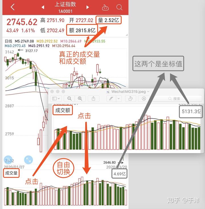 成交量是一种「供需」体现,当供不应求时,大家争先买进,成交量变大,当供大于求时,市场冷清,买家很少,成交量则变小。「成交量」概念指的是股票成交的数量,即「手」数,而这些成交数量的金额,用「成交额」表示,成交额 = 成交量 x 成交均价,而平常我们经常说大盘成交量是多少多少亿,这个时候实际上是指的「成交额」。