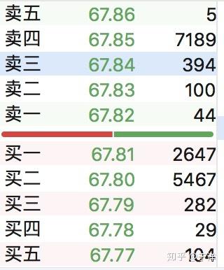 简单些说,就是你买入的价格比「卖一」的价格还高,那么按「卖一」价格优先成交,如果你卖出的价格比「买一」的价格还低,那么按「买一」价格优先成交,我举个例子大家就明白了,以上图中的买卖五档价格和数量为例,假如你进行委托以 67.88 的价格买入 200 手,可以看到你的买入价格比卖一到卖五的价格都要高,那该怎么成交呢,由规则可知,会以 67.82 的价格成交 44 手,不够你的买入数量,然后再以 67.83 的价格成交 100 手,还是不够,然后会继续以 67.84 的价格成交剩余的 56 手,此时,股票价格就会变成 67.84,由于之前的卖一和卖二两档全部被你买光,所以现在的卖一价格就是 67.84,你如果想卖出股票,委托价格比图中的买一价格还要低,成交规则也是一样的。