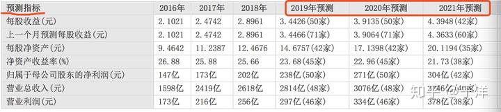 是指用某种方式预估出今年的全年净利润,然后再计算市盈率,这个「预估」,其实就是去猜,然而目前有些交易软件或投资者,完全是歪解了预估的含义,比如直接把公布的一季度的净利润乘以 4,就表示了全年的净利润,同花顺和东方财富都是这样算的,或者是已经公布了前两个季度的净利润,两者取平均值后再乘以 4,或者干脆两者相加再乘以 2,这样的算法,误差是很大的,任何一个行业和公司都是存在盈利波动的,会受到季节性、国内外环境、行业状况、竞争对手等等各方面因素的影响,直接简单的加减乘除,必然导致数据误差过大,那么计算出来的动态市盈率也是没有参考意义的。比较合理的方式,是根据各大券商分析师作出的盈利预测来计算动态市盈率,如下图是东方财富网站某股票的盈利预测平均值,预测数值()内是作出预测的机构数量。